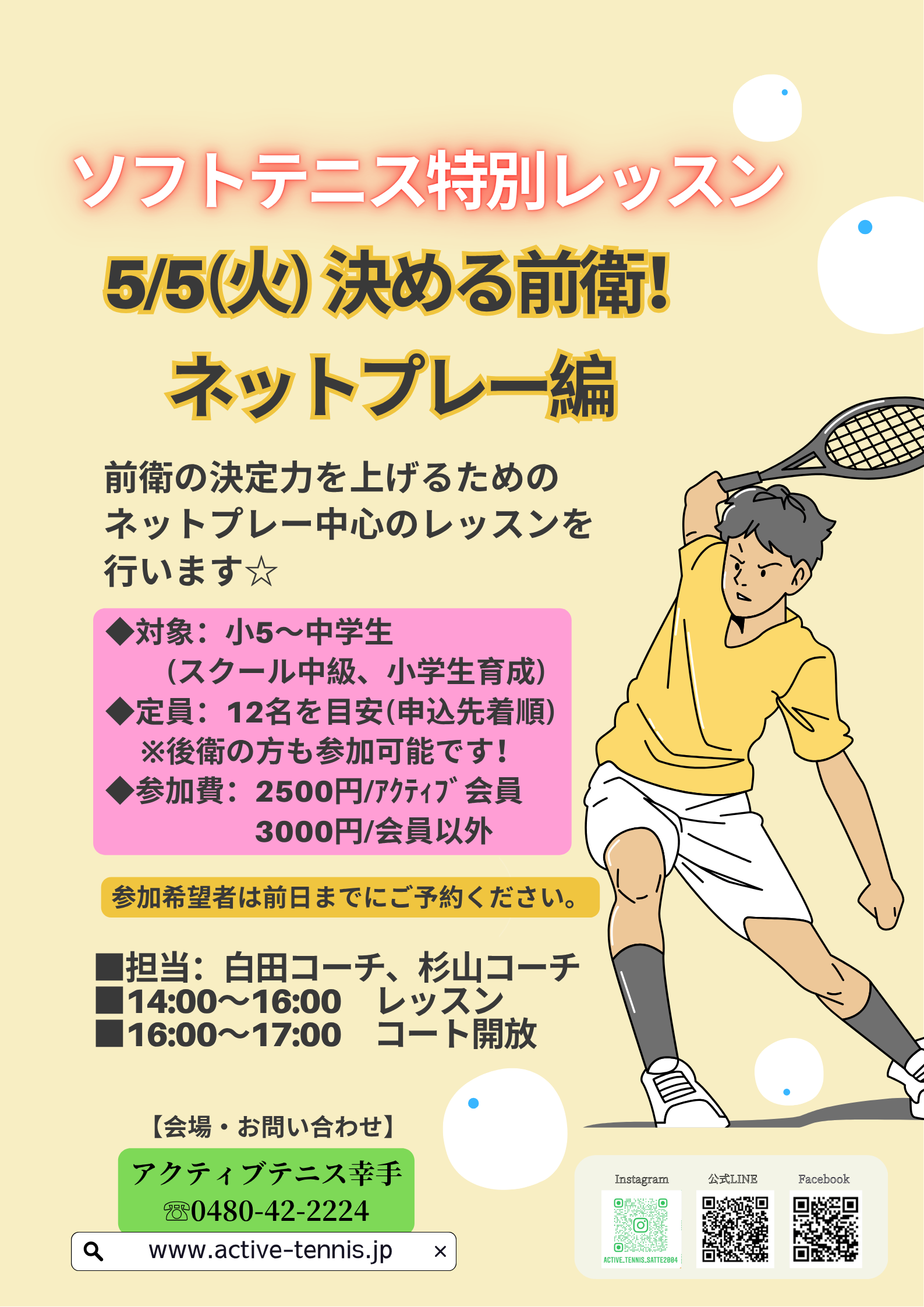 2026/04/28【ソフトテニス】5/5(火)決める前衛!ネットプレー特別レッスン