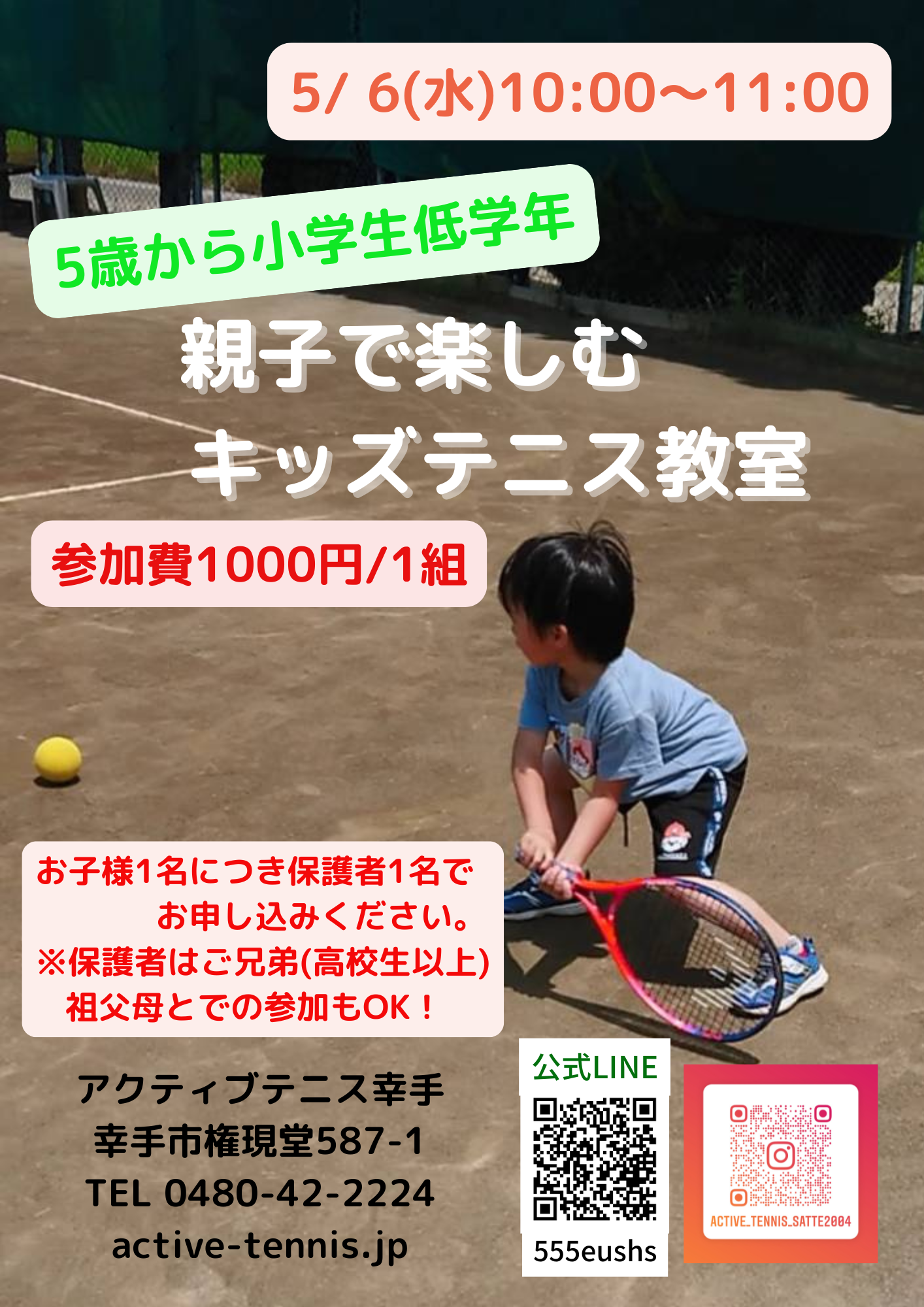 2026/04/28【親子テニス】5/6(水)親子で楽しむキッズテニス教室