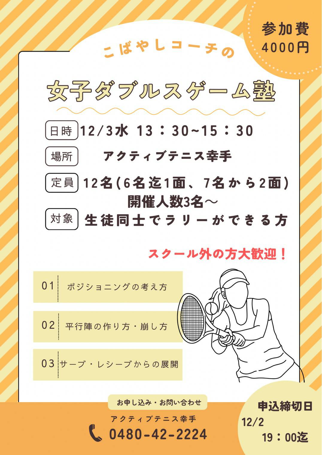 20211229ジュニアお楽しみ会&シングルス練習会案内